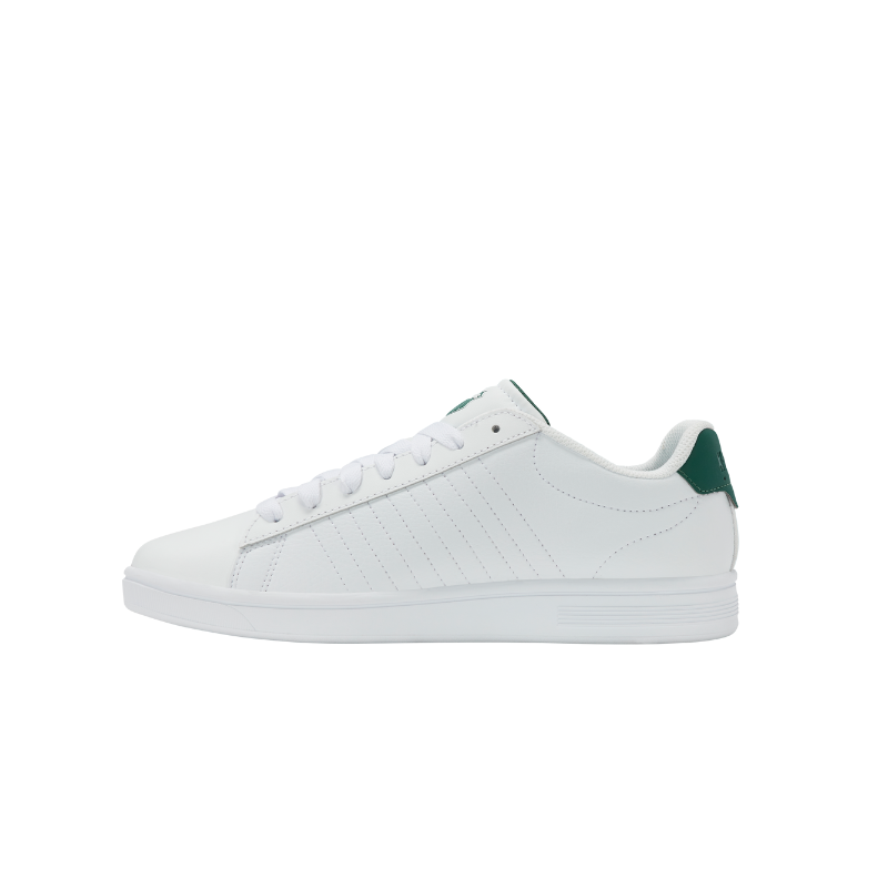 With and aesthetic in line with its predecessor, the Court Shield II receives a subtle makeover keeping it highly recognizable as one of our core sneakers in the court family. With a clean and rounded toe-box, full-length eyestay and slightly padded tongue, it features the K-Swiss shield on the lateral side, and 5 tonal double stitched line on the medial side. With a sleek profile from heel to toe, the Court Shield II is the ideal sneaker for effortless style and comfort.
