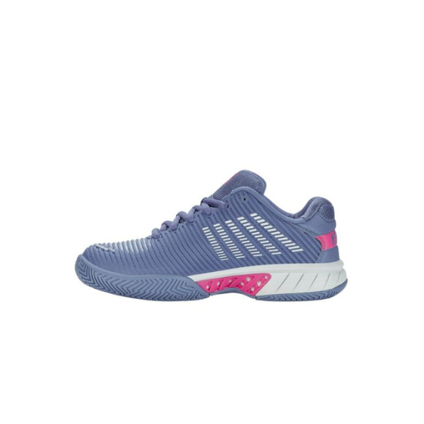 K-Swiss' best-selling shoe, the Hypercourt Express 2 available in HB (clay court). A light, comfortable, breathable shoe with a generous fit - making it the ideal choice for a variety of playing styles and levels. Durawrap Flex, gives the shoe support with no break-in period, while Surgelite midsole technology provides all day comfort.