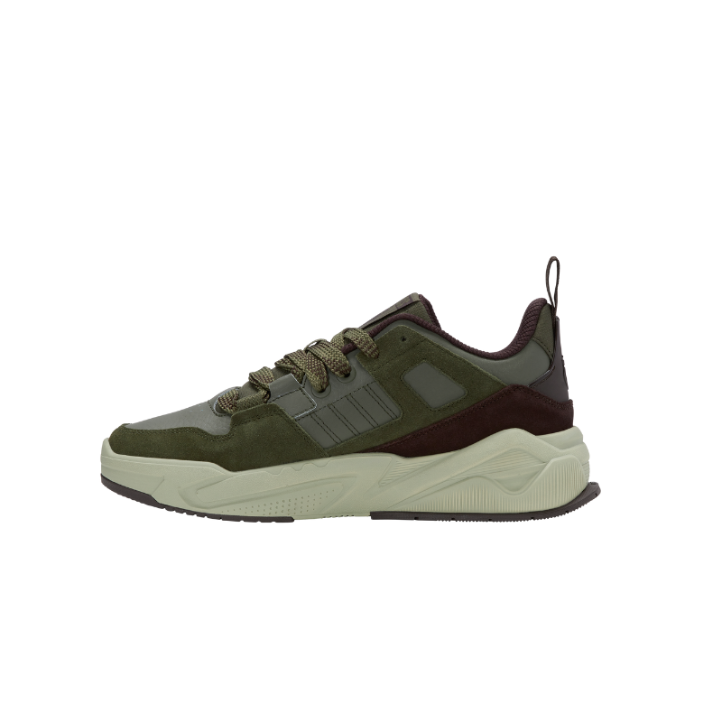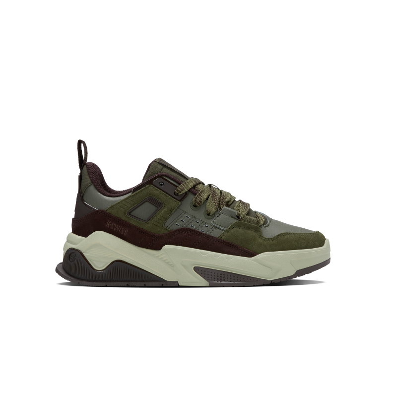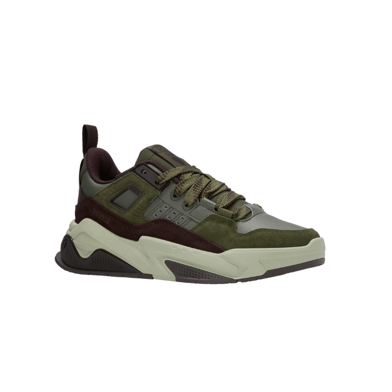 The K-SWISS TECHNA is a sleek, futuristic mid-top sneaker designed with a flat, wide outsole for superior stability and a multi-layer synthetic leather upper for optimal support. Its lightweight EVA midsole ensures a comfortable experience, whether for casual or athletic wear. Available in a variety of materials and seasonal colorways, the K-SWISS TECHNA makes a bold statement of urban athleticism